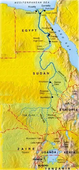 Modern map of the Nile. |