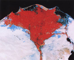 False color satellite image of the Nile Delta, Red