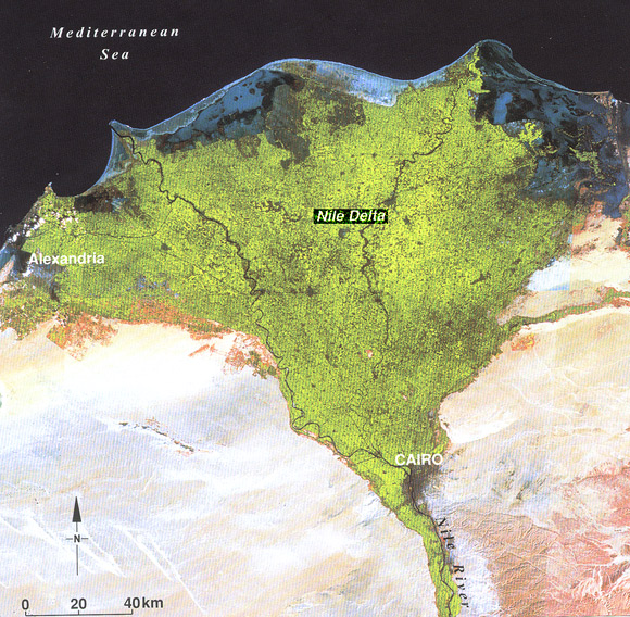 Satellite photo of the Nile River delta.